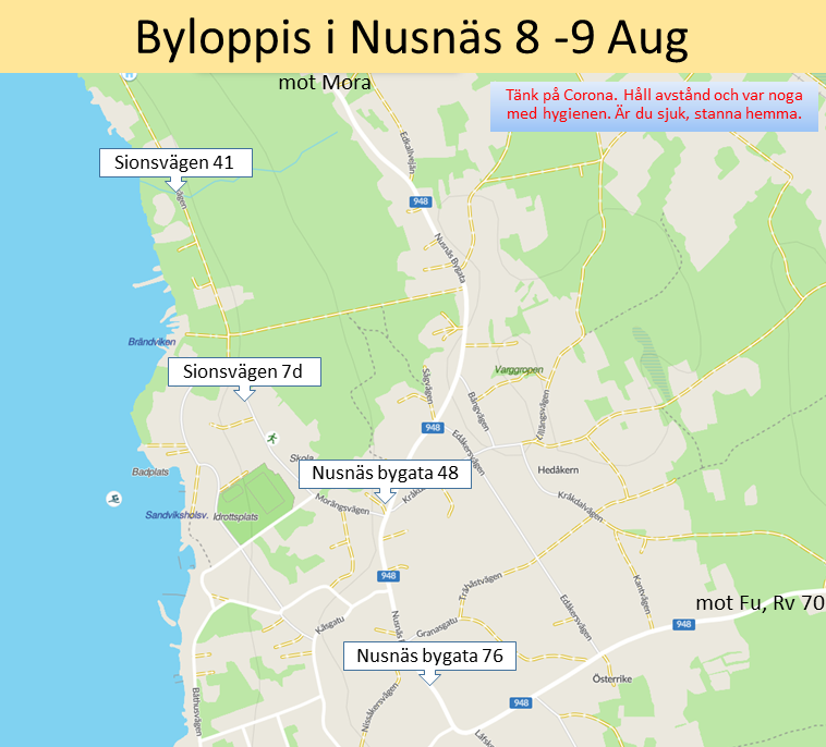 Nu kör vi Byloppis i Nusnäs kommande helg (obs, lite olika öppettider). Se kartan för att hitta hit.