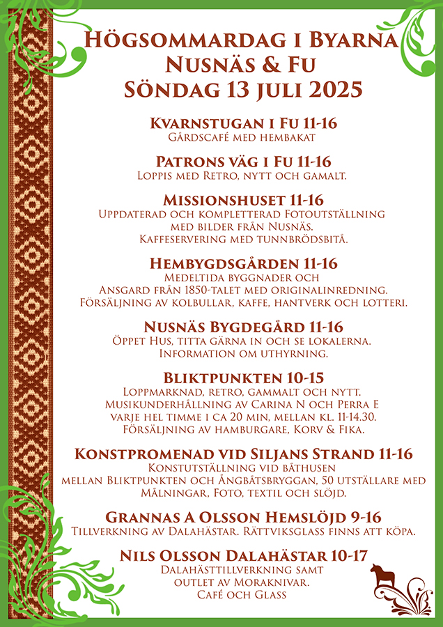 Högsommardag i byarna Nusnäs och Fu