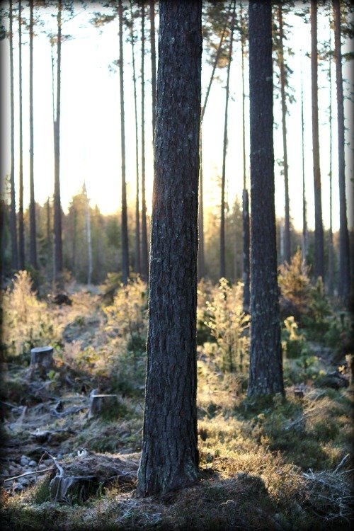 solen stiger och  smyger in sina strålar mellan träden på de frostnupna lingonen och mossan….., snart, snart…- Pass upp, älg på väg mot ditt pass!